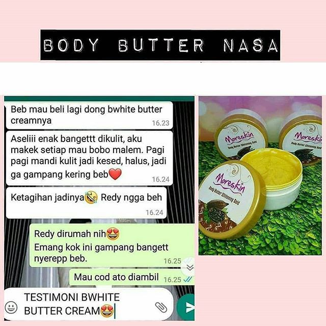 Cara Memakai Body Butter Nasa : Jual Bwhite113 Pencerah Pemutih Pemutih Badan Bpom Vitamin Nasa Scrub Butter Moreskin Lotion Lulur Pemutih Badan Di Seller Waroeng Babe Mojo Kab Mojokerto Jawa Timur Blibli - Melalui pemakaian body butter dari moreskin ini dengan dipadukan dengan vitamin.. Melalui pemakaian body butter dari moreskin ini dengan dipadukan dengan vitamin. Tekstur yang dimiliki body butter lebih pekat dibandingkan dengan body lotion, sehingga dapat bekerja lebih baik sebagai barrier yang dapat . 4 cara menggunakan lotion pemutih badan yang benar. Ada beberapa jenis pelembab tubuh seperti body serum, body lotion, . Caranya mudah yaitu, oleskan body butter secukupnya pada telapak kaki .